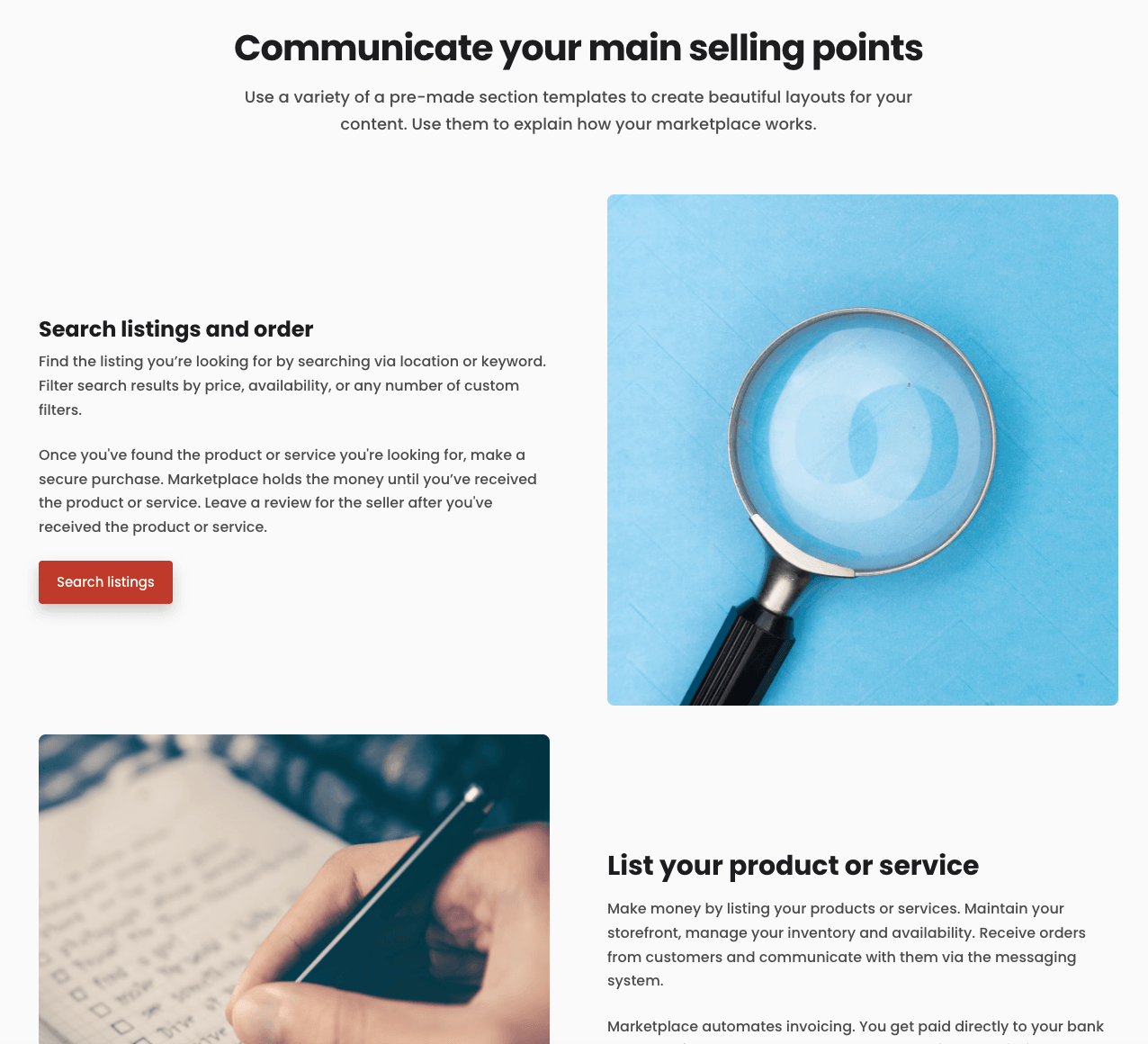 The Sharetribe Web Template is configured to show asset-based content by default.