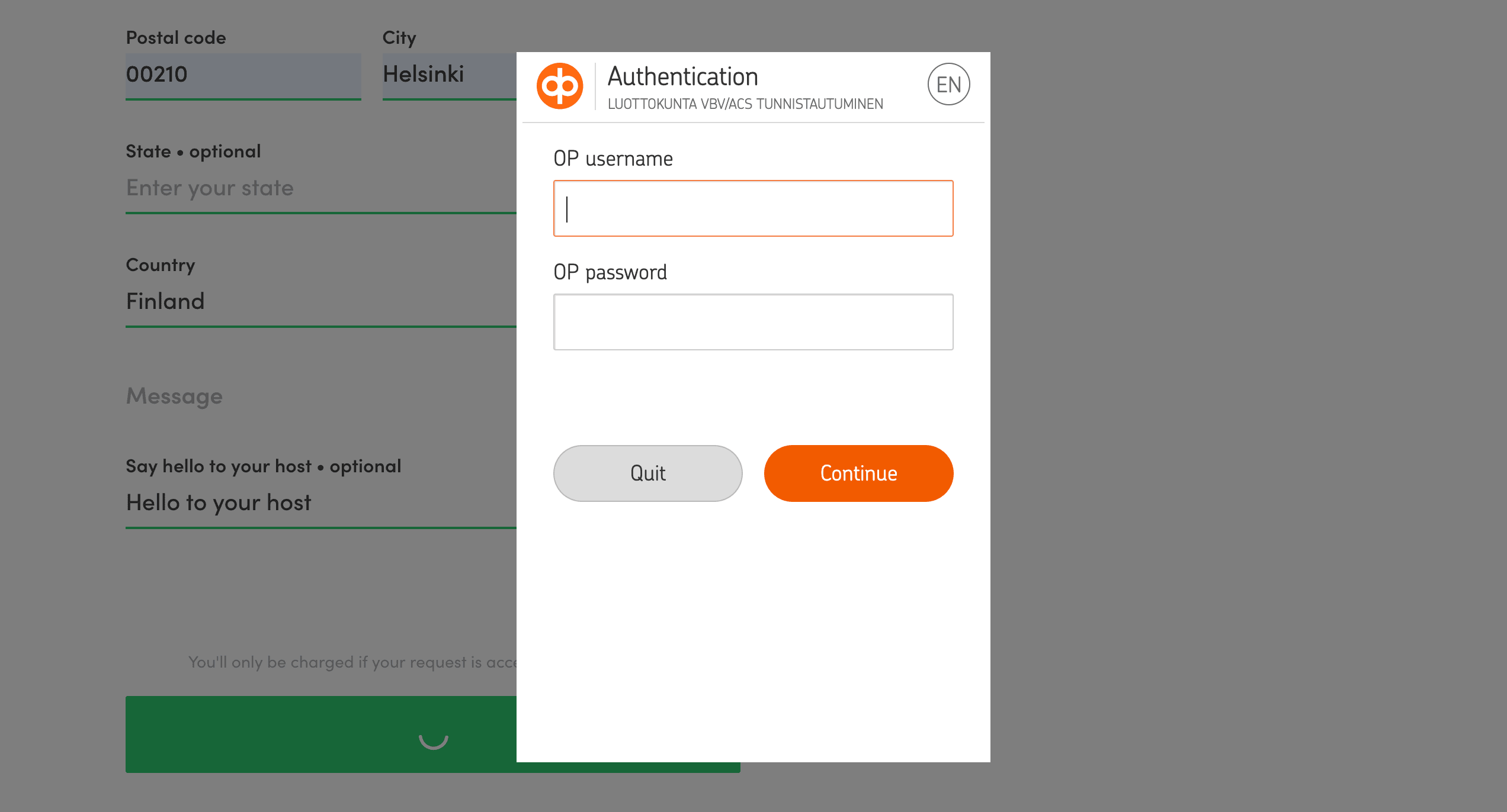 From the customer's perspective, most transactions are business as usual: they make the payment normally by entering their credit card details, and that's it. However, on some occasions, they are presented with a popup that requires them to connect to their online bank to verify the transaction. The experience that follows depends on the bank of the customer. Each bank has their own user interface for this process. The example below is from a Finnish bank Osuuspankki.