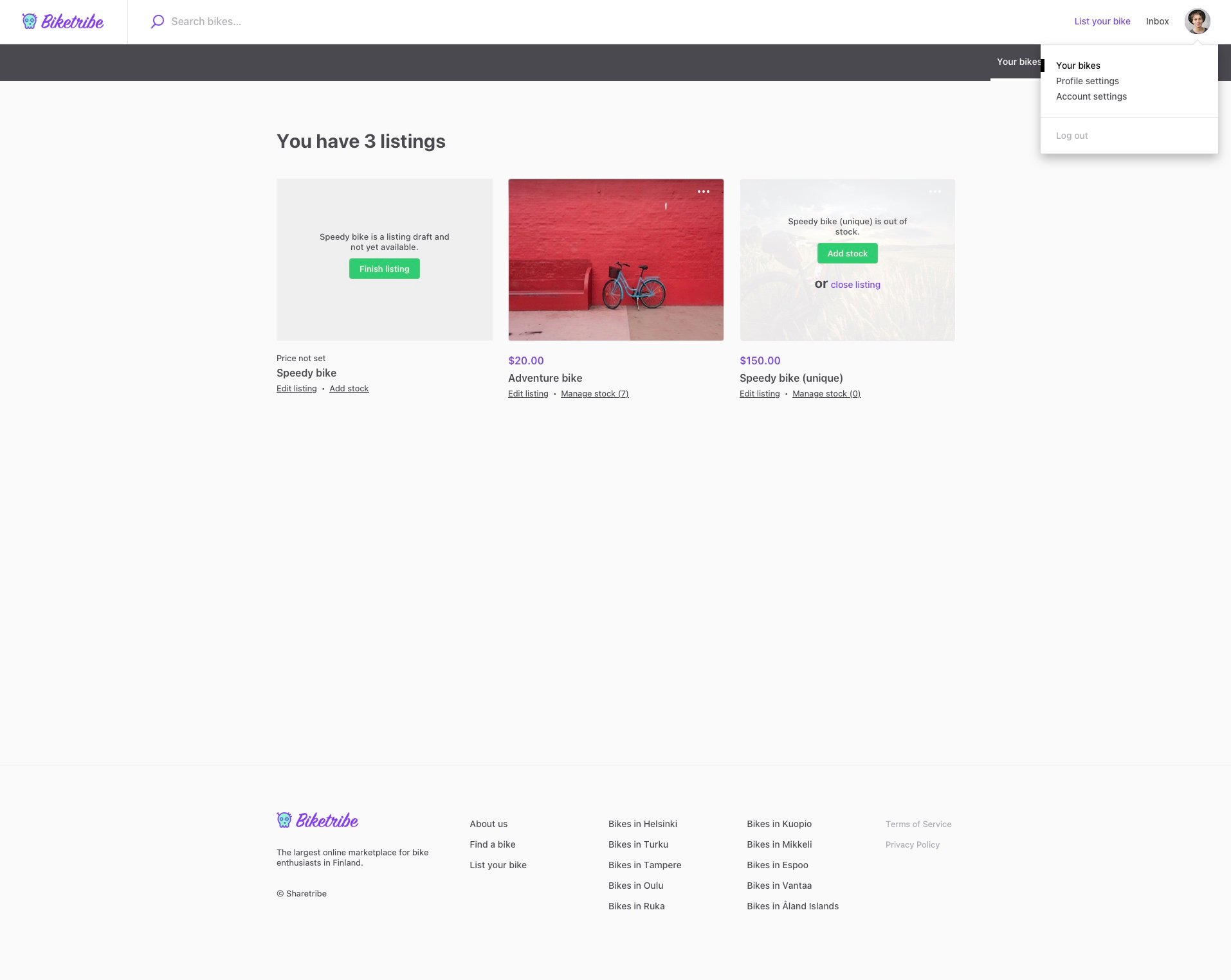 Depending on whether the seller wants to reuse the same listing after stock has run out, they can go to their profile page from the top right corner, and click on “Add stock” or “close the listing”.