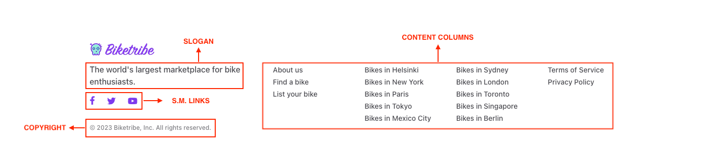 You can a copyright notice in the footer, indicating ownership of your marketplace's content and protecting your intellectual property.