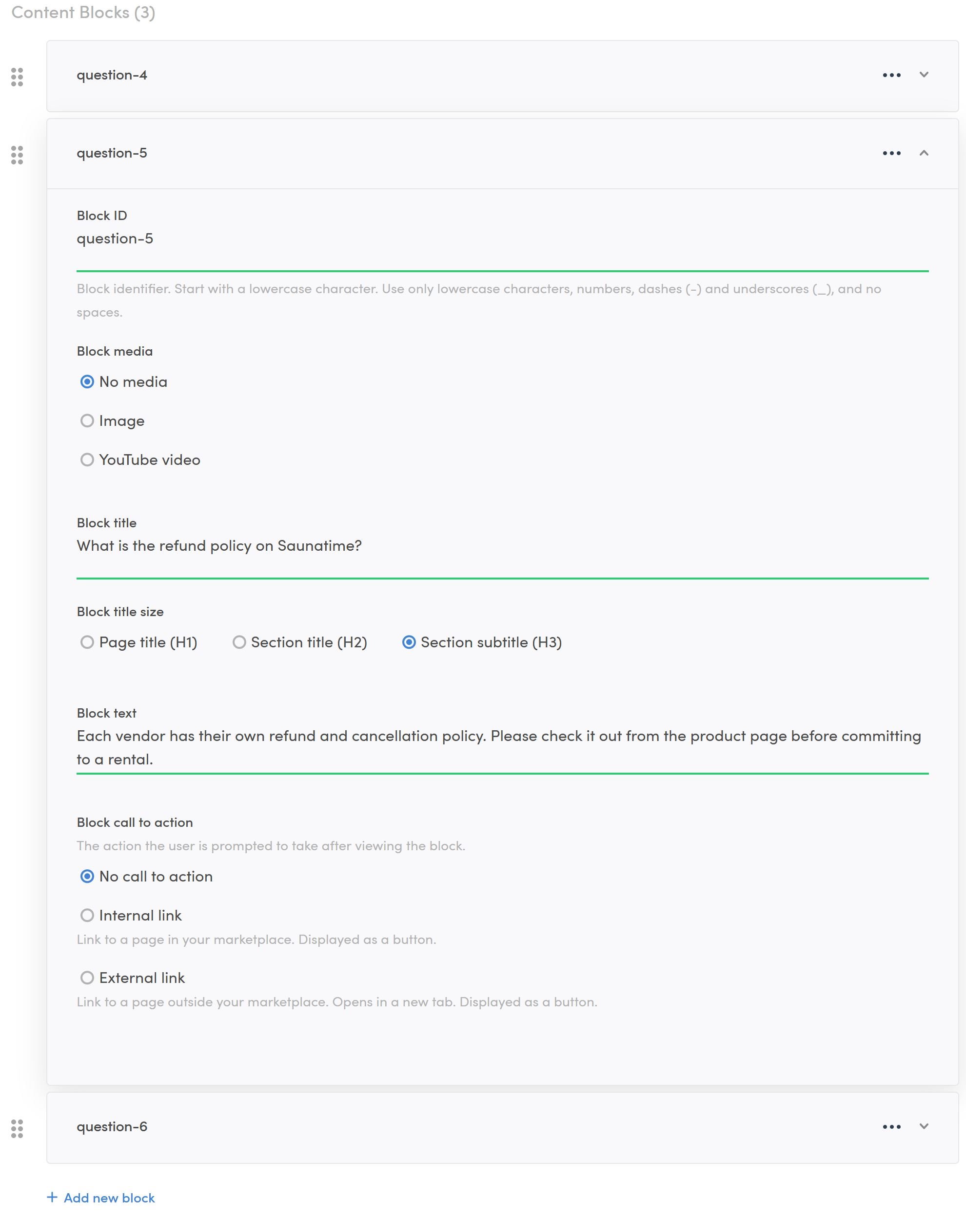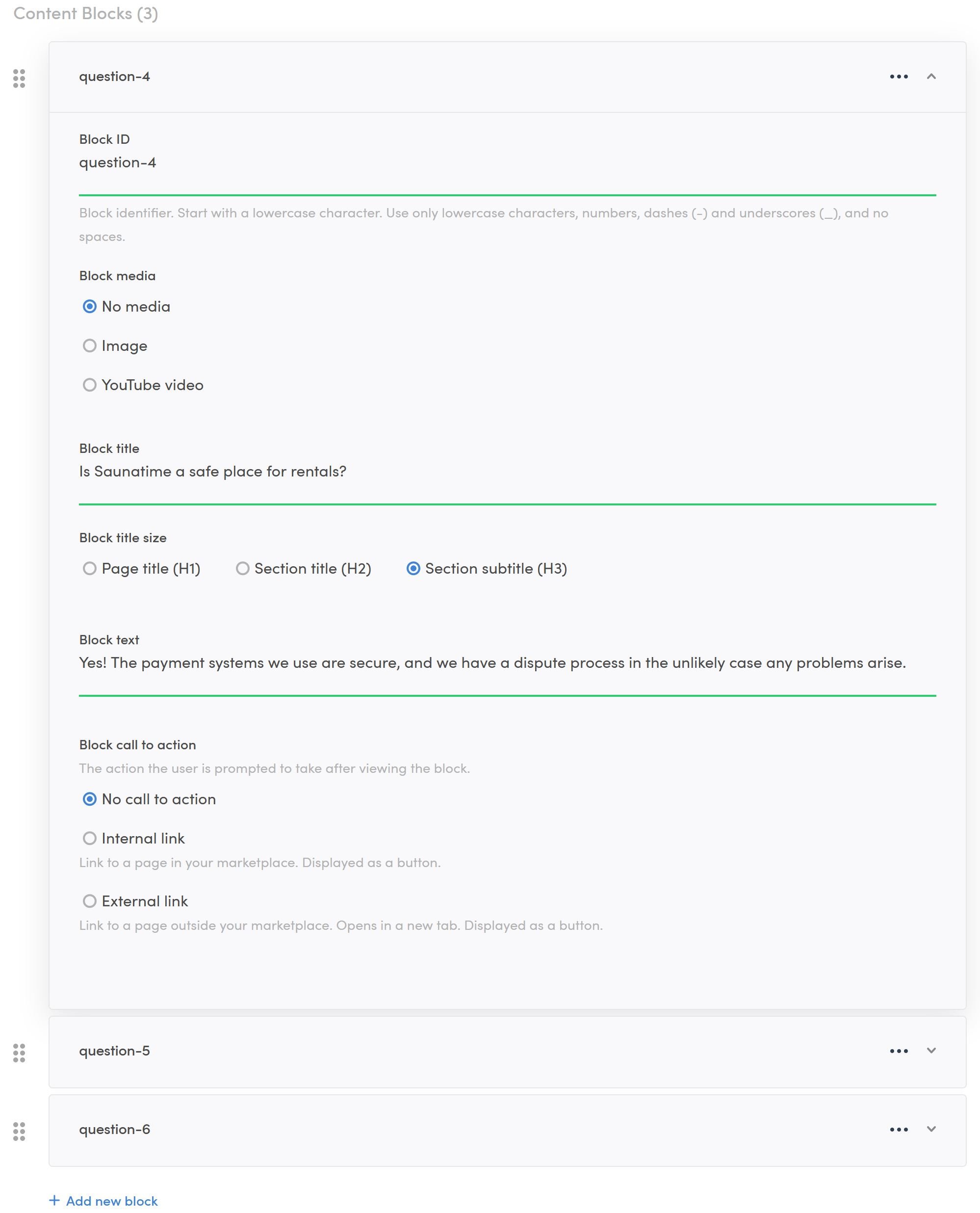 Success - the FAQ page is now created and live on our marketplace! You can see the result below. This tutorial might end here, but the journey doesn’t need to stop here: we can still edit the content of the page at a later time if needed, and of course, create other pages that serve different purposes.