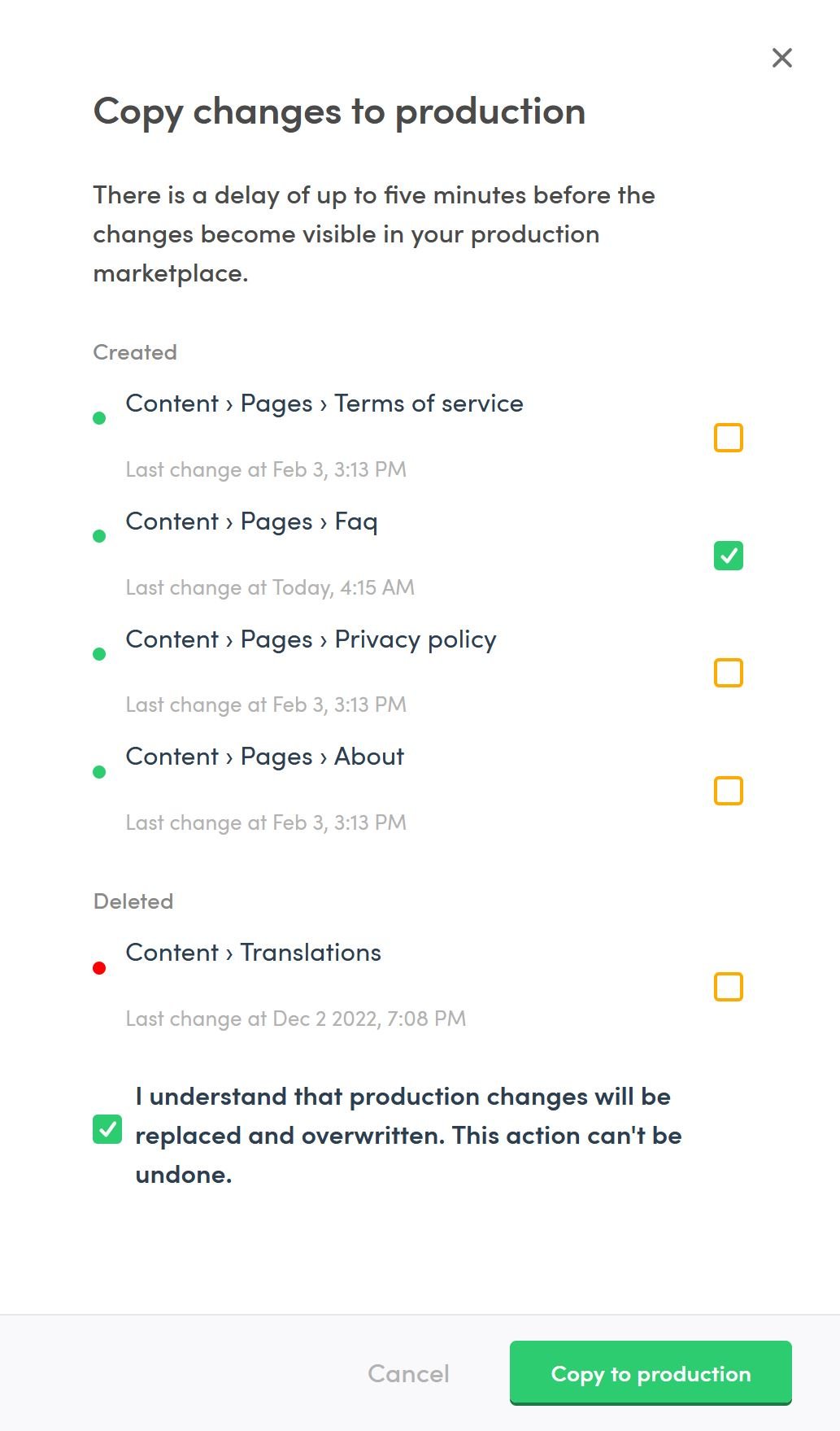 A word of warning here, as well: if you've made changes directly to your Live environment, those changes will be overwritten. This action cannot be undone.