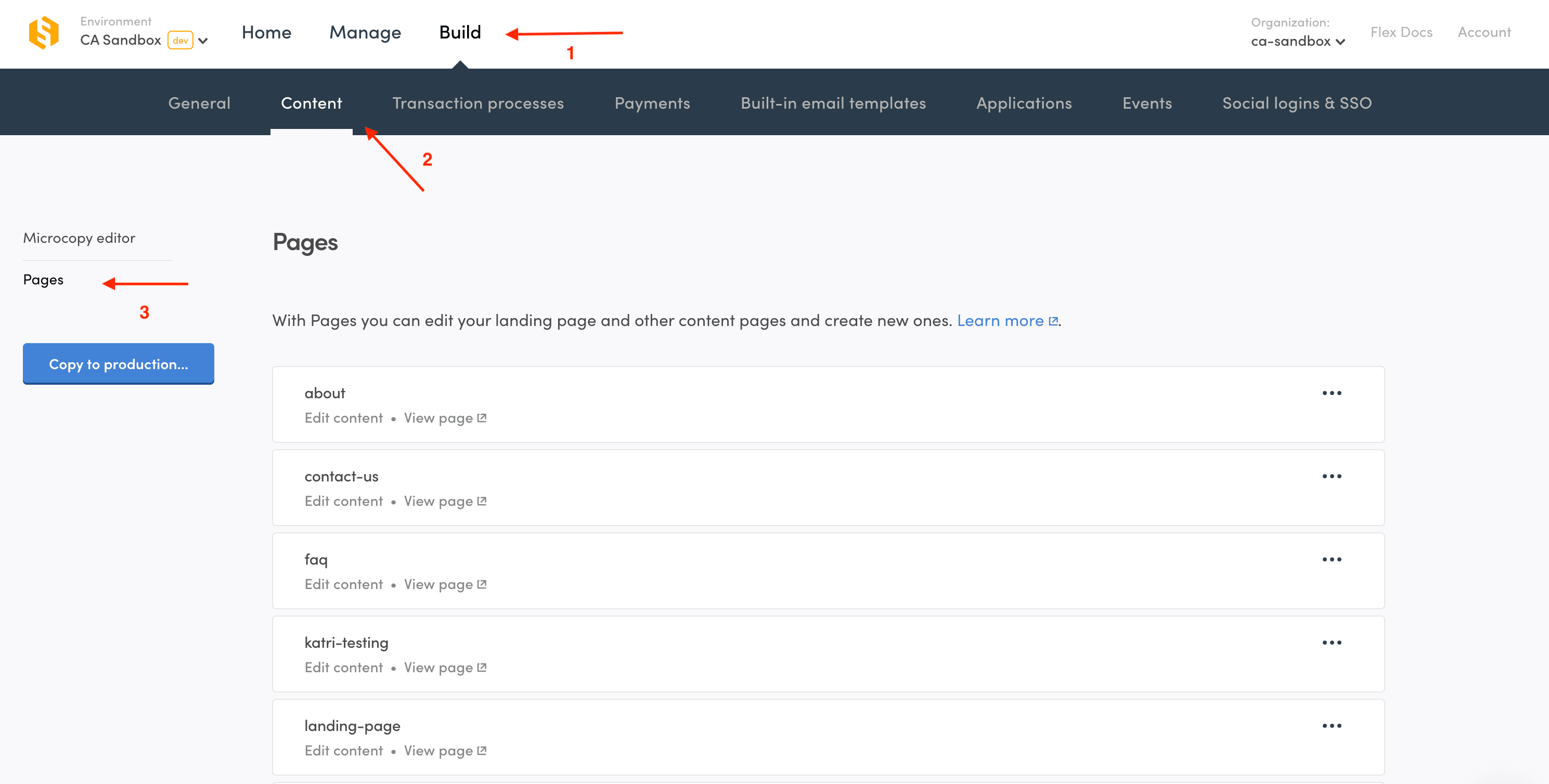 You can use Pages from Console's Build section. You can try it immediately in the Flex Test environment, or use it to create your content after setting up your own marketplace app. Start editing the default content pages, or build your own! Read more about enabling Pages in your marketplace.