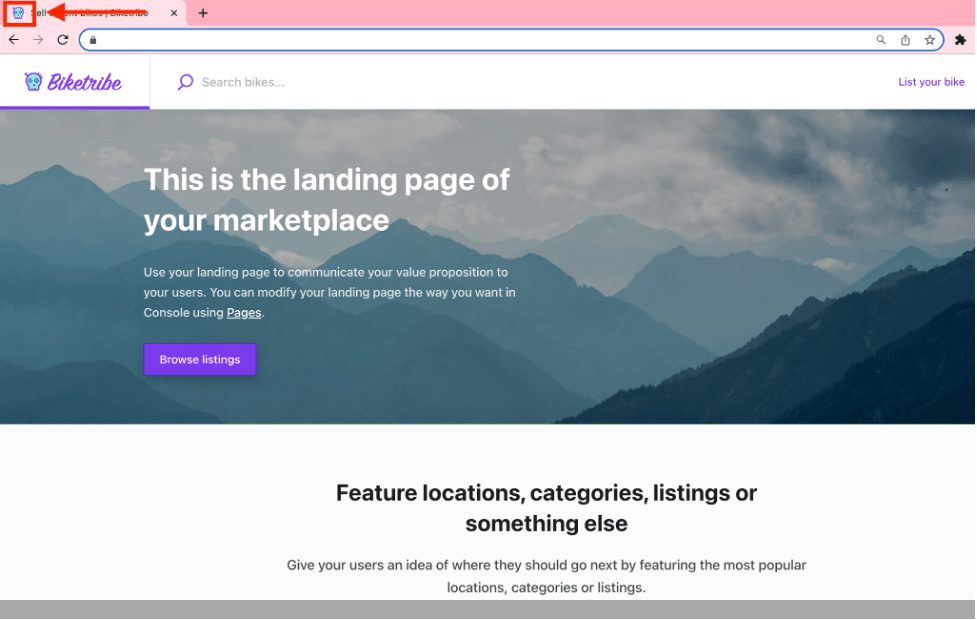 The favicon is shown on the browser's tab. If your logo has a simple icon, you can use this icon as your favicon. It’s also known as the tab icon. For your favicon image, use a square image in dimension 48x48 pixels or bigger. Here’s an example of a marketplace favicon: