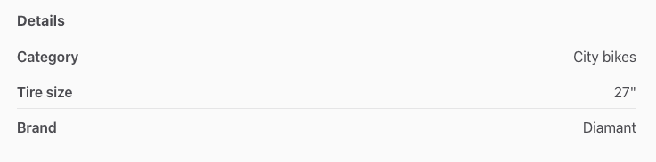This field type is ideal when there are multiple, finite, options to choose from. You can use this field type, for example, for “Shoe size”, “Color”, and “Category”. Bear in mind that if the options are not finite, you might want to use a “Free text” type of field instead. For example, if you sell shoes or bikes, and want to create a field for "Brand", in some cases the number of brands that you will support is finite and that would fit perfectly; in other cases, you might not be able to encompass all the possible brands in one single list. Choose "Free text" instead.