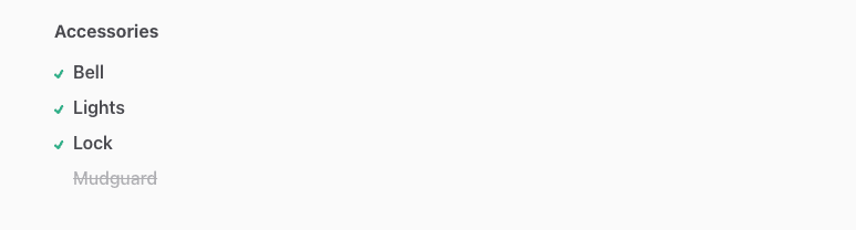 This field type is ideal for relatively homogeneous marketplaces, where people are comparing options. It can be used to display a rental space’s amenities, additional services offered or available sizes. As with Select One, if the options cannot be confined to a specific list set, consider adding a Free text instead (or in addition).