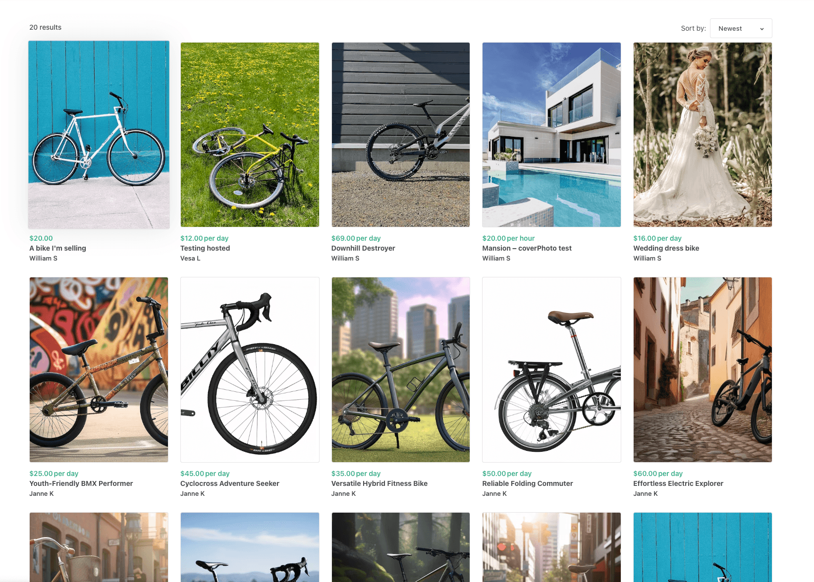 Notice how the "Wedding dress bike" listing (on the top right) looks better with this layout